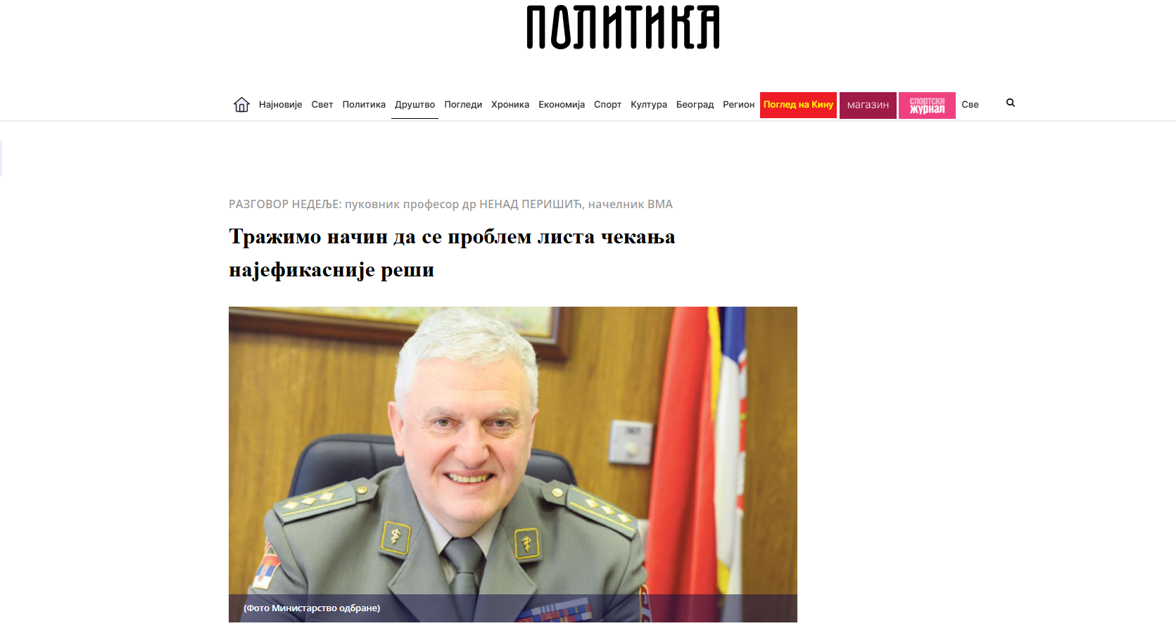 RAZGOVOR NEDELjE: pukovnik profesor dr NENAD PERIŠIĆ, načelnik VMA