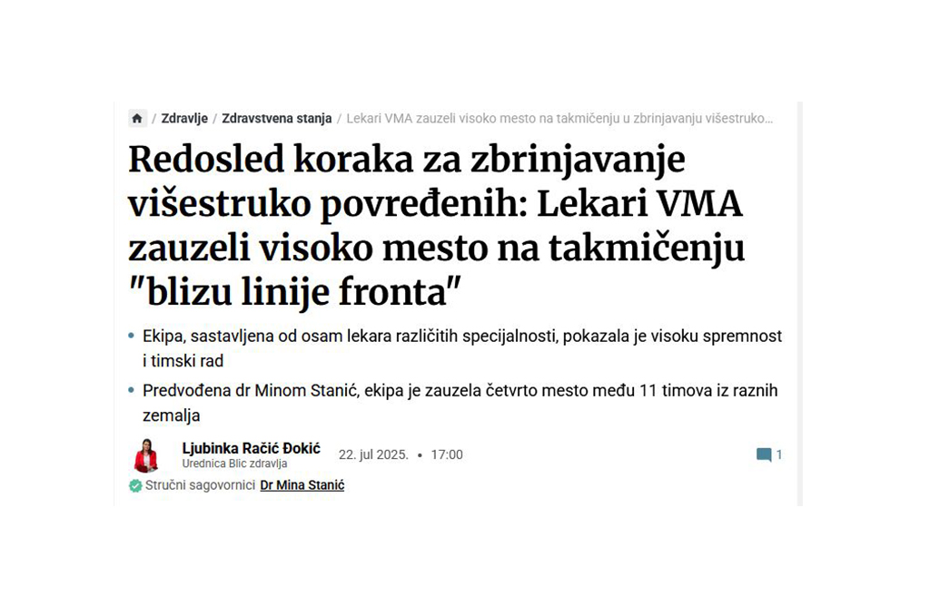 Лекари ВМА заузели високо место на такмичењу "близу линије фронта"