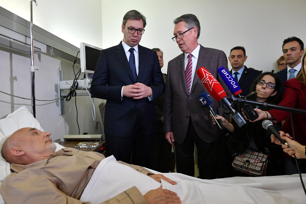Председник Вучић обишао повређеног припадника УНМИКА на ВМА