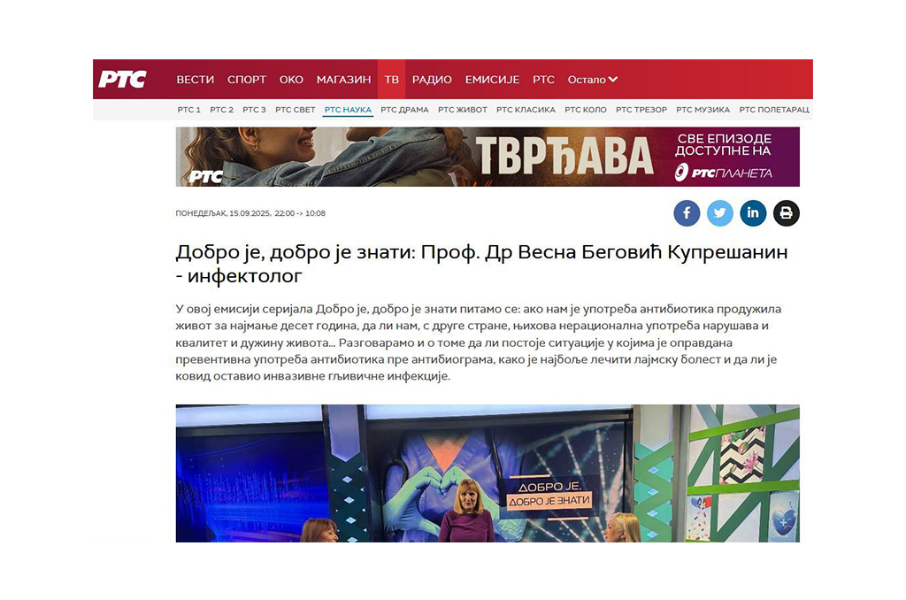 начелница Клинике за инфективне и тропске болести ВМА - проф. др Весна Беговић Купрешанин