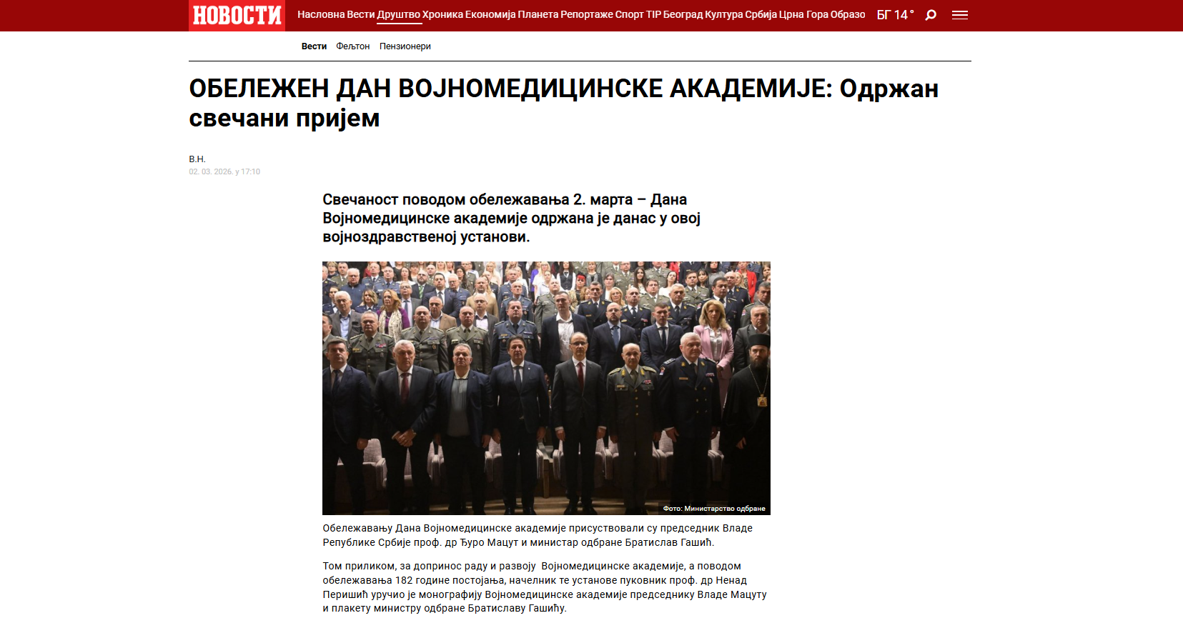 Поздравна реч начелника ВМА